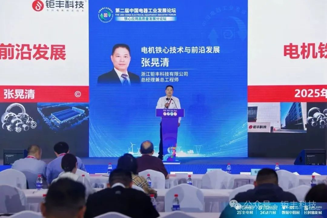 Zhang Huangqing, General Manager und Chefingenieur von Zhejiang Jufeng Technology Co., Ltd., wurde eingeladen, an dem Bericht mit dem Titel „Motor Iron Core Technology and Frontier Development“ teilzunehmen. Basierend auf der kontinuierlich steigenden Marktnachfrage analysierte er eingehend den technischen Weg von Iron Core, um Leistungs- und Kostenanforderungen zu erfüllen. Sein tiefes Verständnis der Eisenkern-Herstellungstechnologie und seine neuesten Forschungsergebnisse im Bereich der Eisenkern-Herstellung wurden von den Teilnehmern hoch gelobt. Als Plattform für die Heranbildung und Zusammenführung von Branchenelite und professionellen Talenten fördert Jufeng Technology den kontinuierlichen Fortschritt und die Verbesserung der Technologie der Branche. Jufeng Technology wird weiterhin einen Beitrag für Kunden, Branchen und die Gesellschaft leisten.